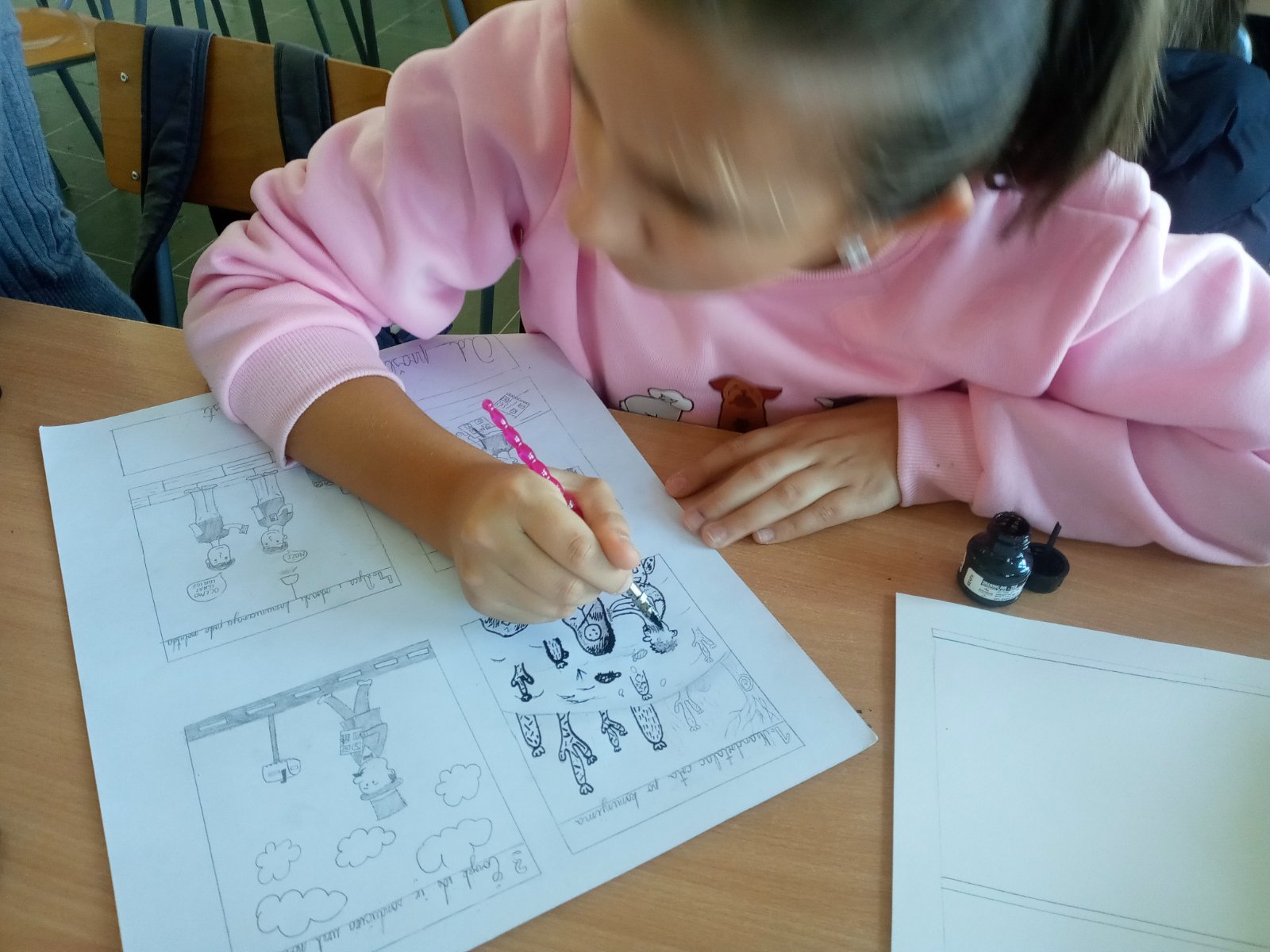 Radionica je ponovo održana u prostorijama Osnovne škole Uskoplje, a naši mali strip-autori još jednom su pokazali svoju kreativnost, maštovitost i timski duh!